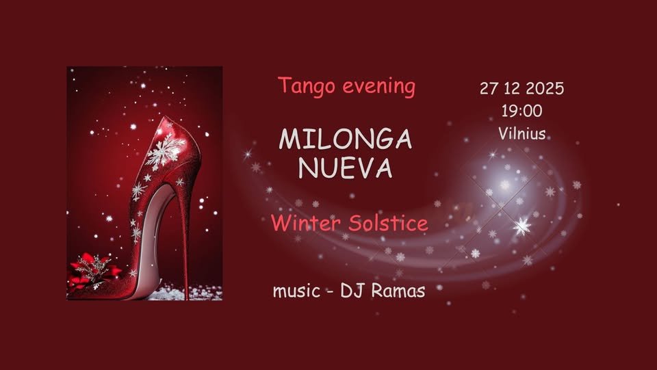 Besibaigiant Gruodžiui, pasitiksime Žiemos saulėgrįžą, kuomet stoja trumpiausia diena ir ilgiausia naktis! ✨ Jaukiai sutiksime Šv. Kalėdas ir švęsime senų gerų metų pabaigą. Ir šį stebuklingą metą mes kviečiame visus susitikti, apsikabinti, pabūti kartu ir smagiai šventiškai pašokti! 💃 Gruodžio 27 d. lauksime jūsų Kalėdiniame tango vakare 💖 MILONGA NUEVA! 💖